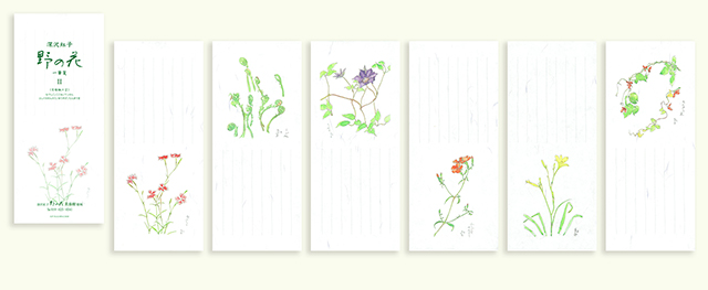 深沢紅子の水彩画がレイアウトされた一筆箋です。一冊の中に6絵柄を収めました。