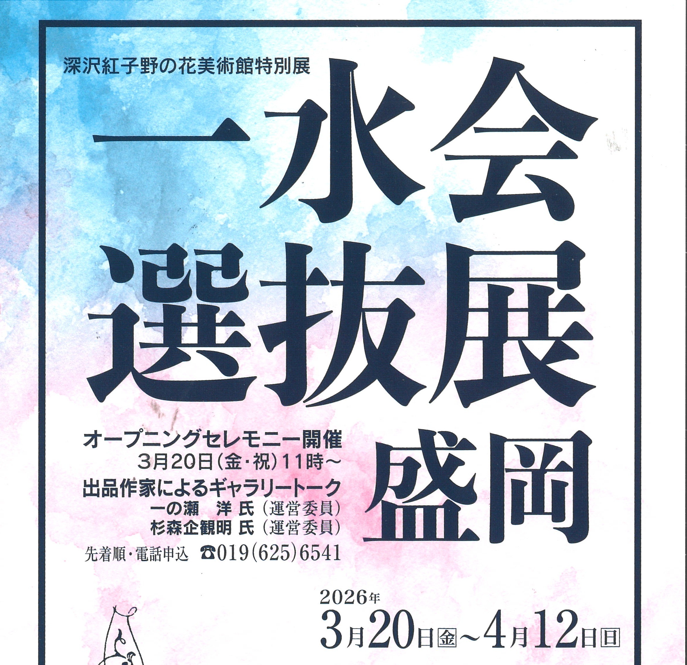 本年も、「一水会選抜展 盛岡」を、当館で開催する運びとなりました。只今展示替えを行っております。初日11時からは、オープニングセレモニー及びギャラリートークを、展示室にて予定しております。観覧料にてどなたでもご参加できます。ご来館を、心よりお待ち申し上げております。